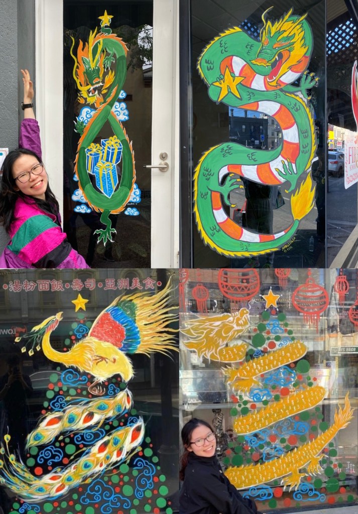 The Festive Art on Windows is an annual program that transforms the shops of Sydney Road Brunswick into a colourful and enchanting display of festive spirit. I participated in both 2021 and 2022 with colourful dragon designs that reflect my Chinese heritage.